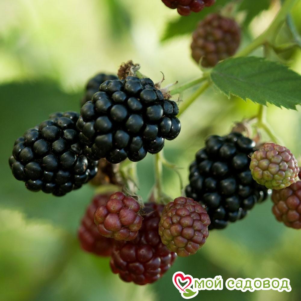 Ягоды легко отделяются от плодоножки, ароматные, сочные, приятного освежающего вкуса, похожи по вкусу на ежевику Торнфри. Ягодный куст характеризуется стелющимися побегами – типичная росяника. Молодые ветви – зеленого цвета, зрелые – коричневато-красные. Длина ветвей может достигать 4-6 м. Относится к поздним сортам. Созревание ягод в условиях Центрального региона приходится на 2-ю половину августа и продолжается весь сентябрь. Урожай собирают в несколько приемов. Черные с глянцевым блеском ягоды буквально покрывают плодовую ветвь  — на одной веточке их можно насчитать до 70 шт. Все плоды одномерные – массой 3,5…4,0 г. Преимущества сорта Плотные ягоды долго не текут, не мнутся и сохраняют товарный вид. Отсутствие шипов упрощает уход за кустарником и уборку урожая. Морозостойкость до -23 градусов позволяет выращивать сорт с минимальным укрытием на зиму. Устойчивость к традиционным грибковым заболеваниям европейского континента. ПОСАДКА Саженцы ежевики лучше всего высаживать в небольшую траншею осенью в конце сентября или весной в апреле, не дожидаясь высокой температуры воздуха, чтобы саженцы успели прижиться. После посадки поливают, окучивают и  поверх мульчируют перегноем, древесными опилками или торфом.
