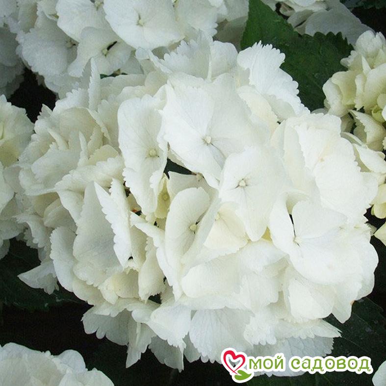 Гортензия Нимфе — цветки белые, с зубчатыми лепестками. Благодаря своей компактности, эта гортензия удобна как для одиночной, так и групповой посадки. Саженцы требуют внимания к составу почвы: не переносят известь и любят влагу. Если укрывать на зиму, то Нимфе отзовётся благодарностью в виде изящных белых соцветий, диаметром до 20 см. и цветущих с июля по сентябрь. В зависимости от кислотности почвы может менять окраску. Возраст саженца при продаже однолетка, с закрытой корневой системой